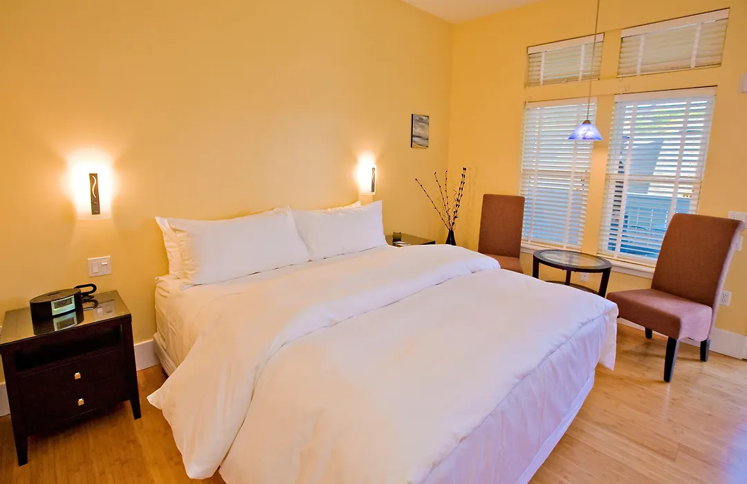 Le camere del Pacific Blue Inn dispongono di un patio e un salottino, nonché di un asse e un ferro da stiro per la tua comodità. I bagni offrono un bagno con WC separato e una doccia e altre comodità, come asciugacapelli e teli da bagno.